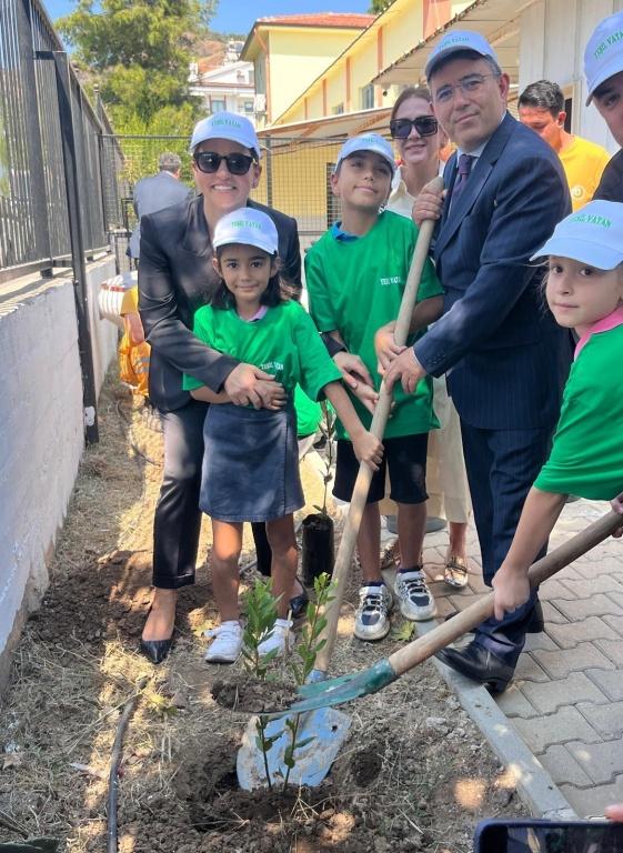 Marmaris Kaymakamı Sayın Nurullah KAYA ve Marmaris İlçe Milli Eğitim Müdürümüz Sayın Serap AKSEL "YEŞİL VATAN BENİM OKULUM GELECEĞE ÇARE " etkinliğimizde arka bahçemizde oluşturduğumuz bahçemize ilk fidanlarımızı diktiler.